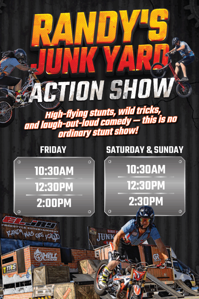 Get ready for big stunts, big laughs, and big entertainment at Randy’s Junk Yard!