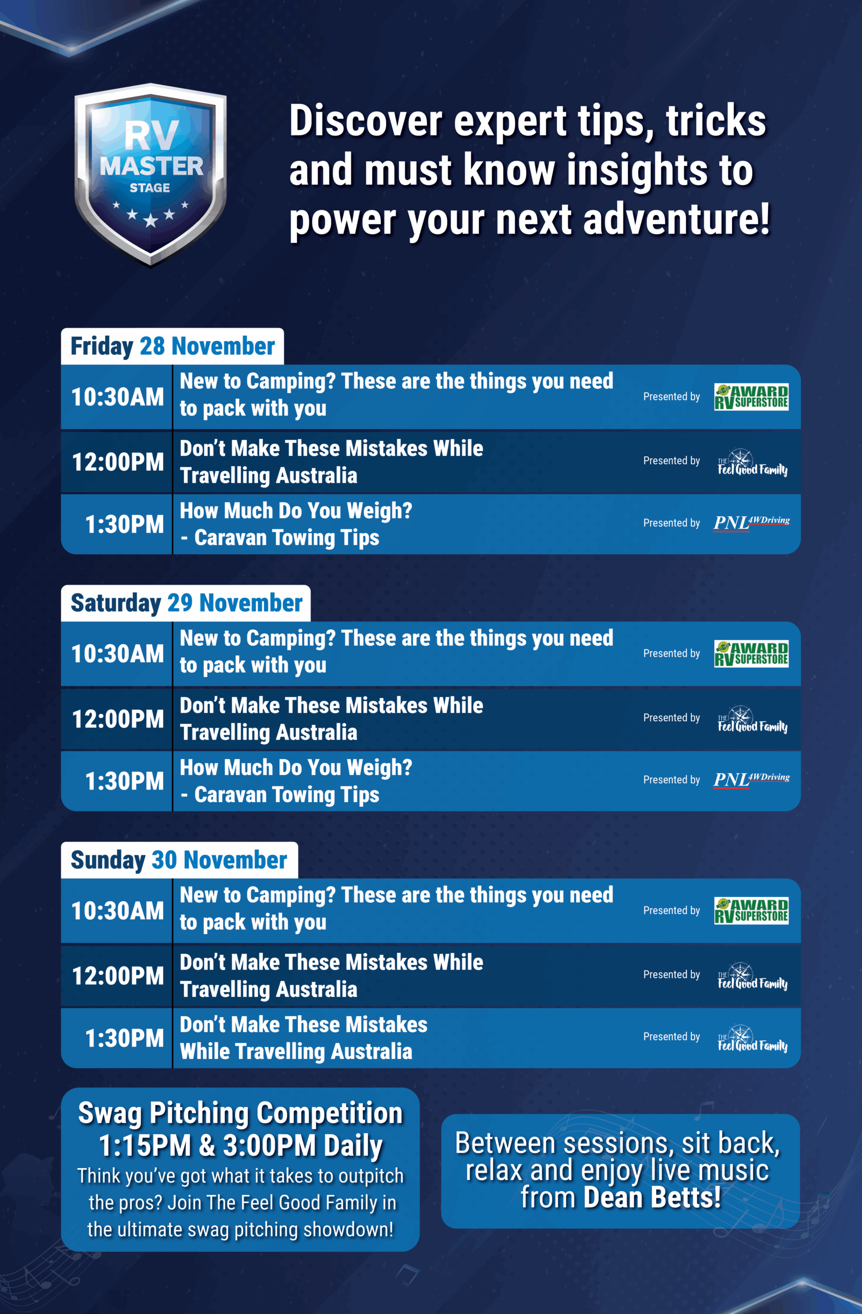 Between sessions, sit back, relax and enjoy live music from Dean Betts.